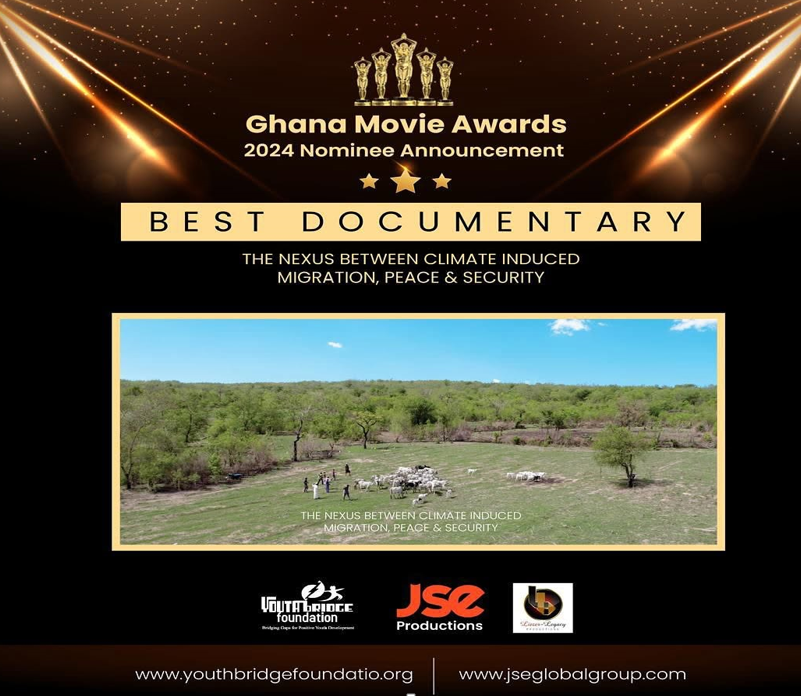 The Youth Bridge Foundation’s documentary “The Nexus between Climate Induced-Migration, Peace and Security’ has been adjudged “The Best Documentary For 2024” at this year’s Ghana Movie Awards (GMA) held over the weekend.