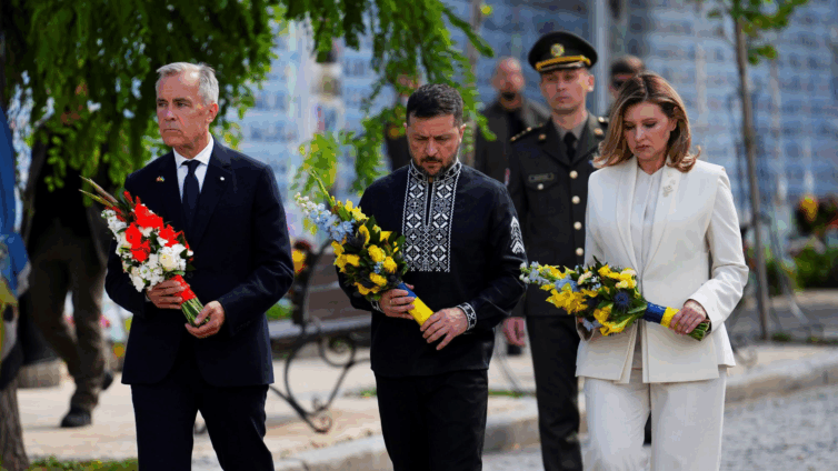 Canada's Prime Minister Mark Carney took part in the celebrations, and stood beside Zelensky at St Sophia's Cathedral as he addressed the crowd: