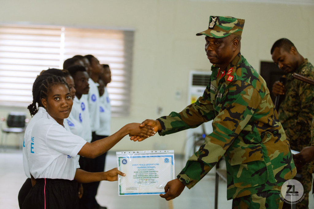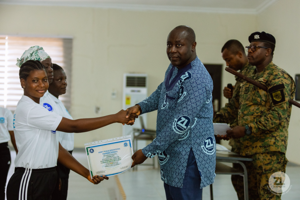 The recruits who were trained at the Army Peace Operations Training School (APOTS) at Bundase Training Camp were taken through an intensive two-weeks training in basic management skills, drill, cleaning, self-discipline, physical fitness, time management, team work, crowd control among others.